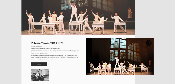 網(wǎng)站實(shí)現(xiàn)視頻在線播放功能,訪問者可在線觀看舞蹈視頻,下拉進(jìn)入詳情頁時(shí),視頻會(huì)以小窗口播放形式,懸浮在頁面上方,使得用戶瀏覽詳情介紹信息時(shí),也可同時(shí)觀看視頻,適配了用戶的觀感體驗(yàn)。