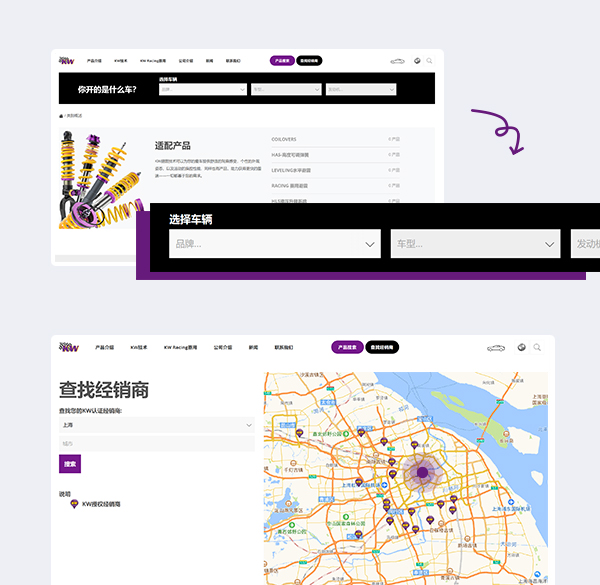 KW汽車全球性的知名度和高口碑讓KW成為個人改裝避震品牌的首選之一。作為面向全球客戶的公司,KW需要針對全球所有國家語言的多語言且統一風格版本的網站,中文網站改版與建設需要契合產品品牌屬性及產品基調。邁若從設計、動畫效果、用戶體驗等場景綜合為品牌打造一站式線上展現平臺。