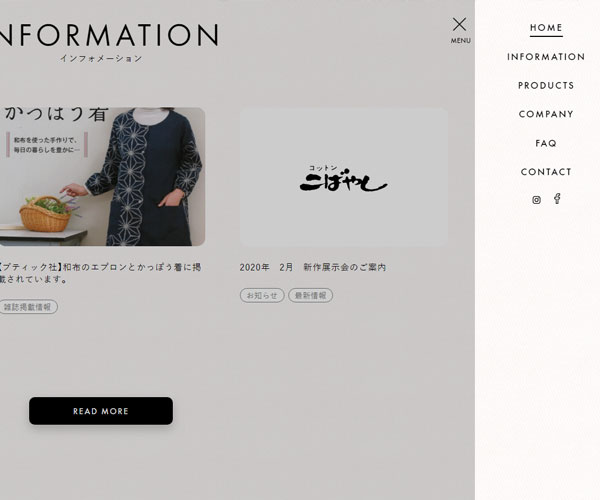 Cotton-kobayashi為布藝雕繡優美的花紋,網站是一個經典制作方式的電商網站布局