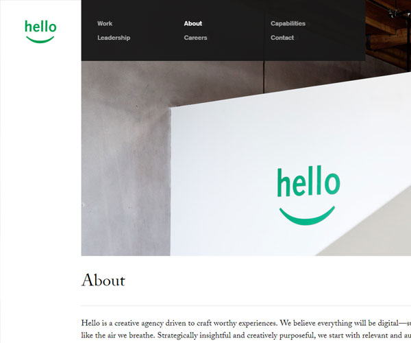 Hellodesign是一家數(shù)字設(shè)計公司,網(wǎng)站通過簡潔的制作風(fēng)格與成熟的文字排版方式
